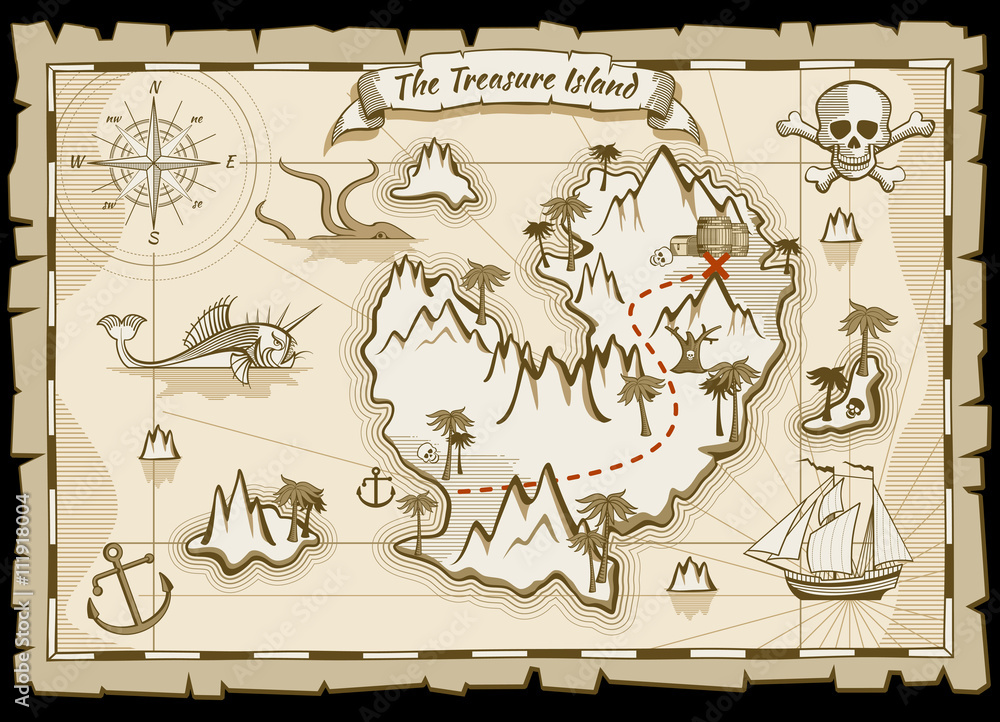 Photo & Art Print Vector Pirate Treasure Map, pingebat